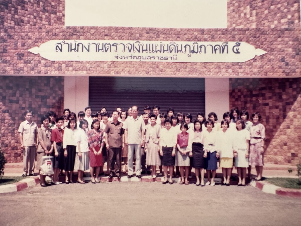 ต่อมานายวิชิต เพ็ชราภรณ์ เมื่อครั้งดำรงตำแหน่งผู้อำนวยการตรวจเงินแผ่นดินภูมิภาค สำนักงานฯ ที่ 3 ได้ติดต่อประสานงานเพื่อหาที่ทำการชั่วคราว และได้ขออนุเคราะห์จากนายธำรง ไทยมงคล อดีตนายกเทศมนตรีเทศบาลตำบลวารินชำราบ ให้ใช้อาคารศูนย์กีฬาเยาวชนเทศบาลตำบลวารินชำราบเป็นที่ทำการชั่วคราว จากนั้นจึงได้ย้ายข้าราชการที่ไปปฏิบัติงานยังสำนักงานฯ ที่ 3 และสำนักงานฯ ที่ 4 มาปฏิบัติงานที่สำนักงานฯ ที่ 5 เมื่อวันที่ 1 ตุลาคม 2532 โดยมีนายมนตรี สายทอง เป็นผู้อำนวยการตรวจเงินแผ่นดินภูมิภาคที่ 5 เป็นคนแรก